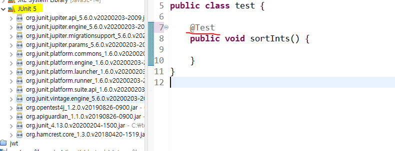 - @Test가 선언된 메서드는 테스트를 수행하는 메소드가 된다.
