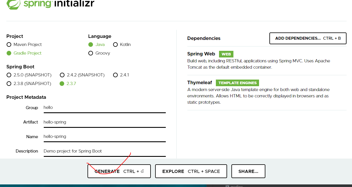 implementation 'org.springframework.boot:spring-boot-starter-thymeleaf'